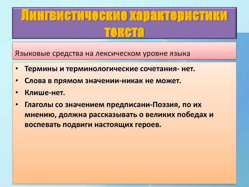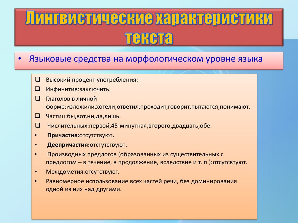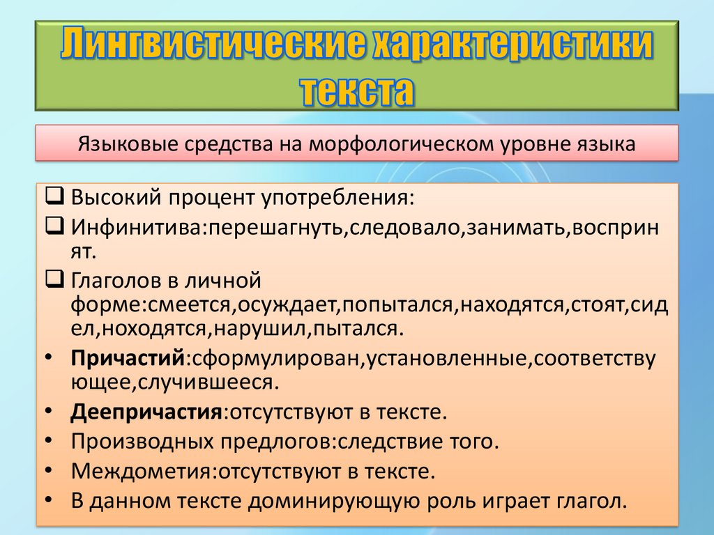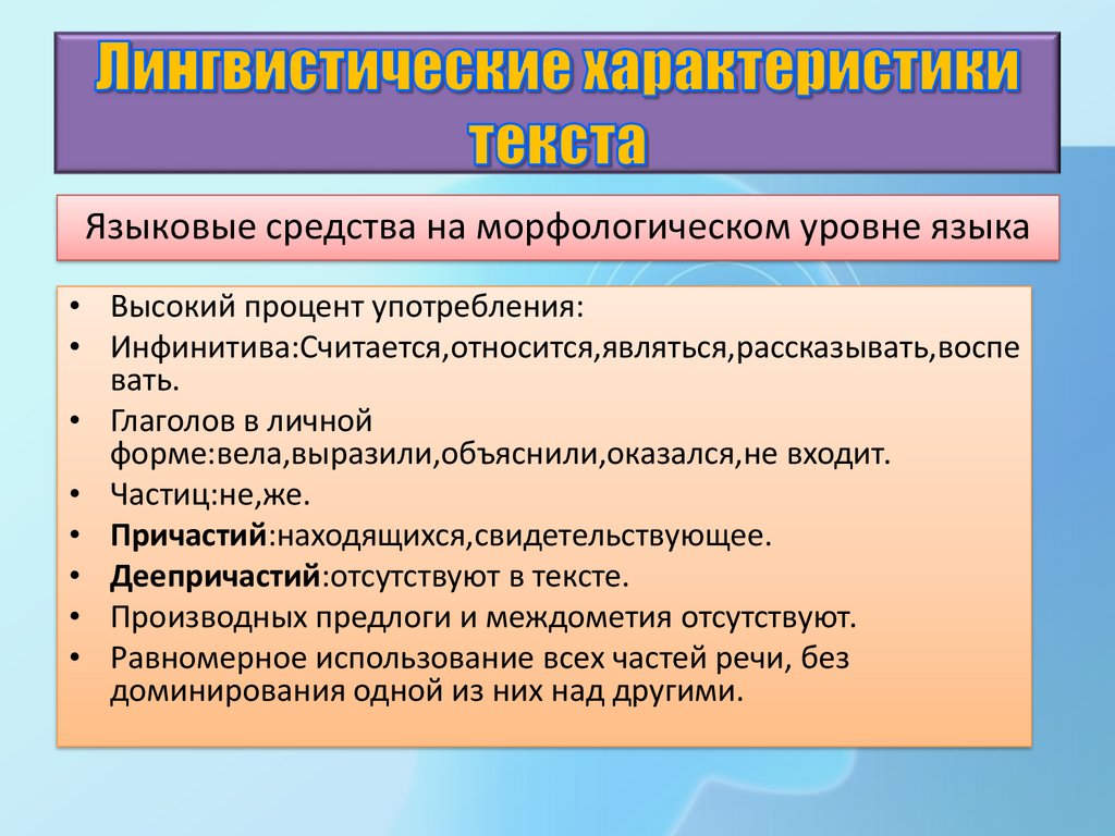 Лингвистические характеристикитекста