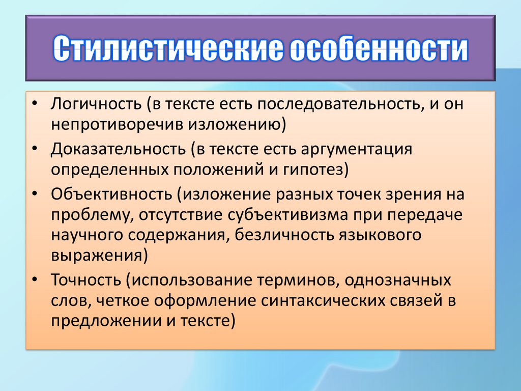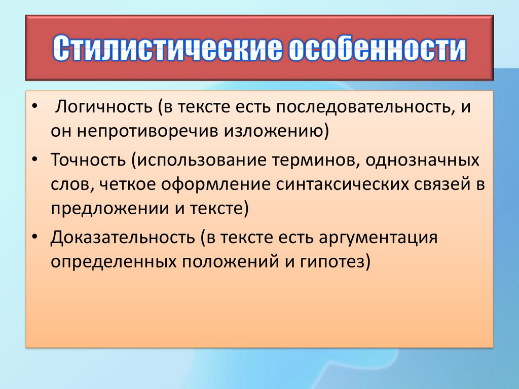 • Доказательность (в тексте есть аргументация