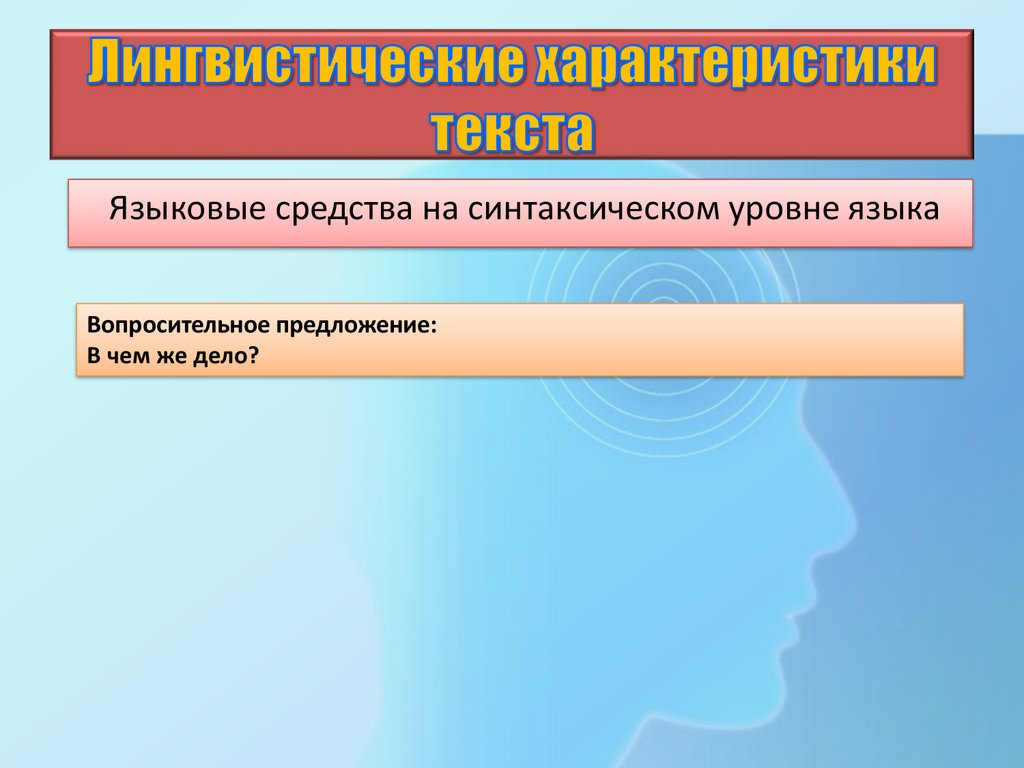 Языковые средства на синтаксическом уровне языкаВопросительное предложение: