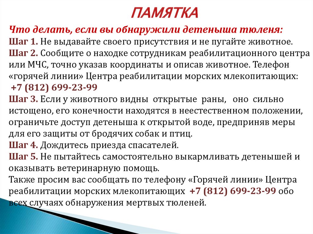 ПАМЯТКАЧто делать, если вы обнаружили детеныша тюленя: