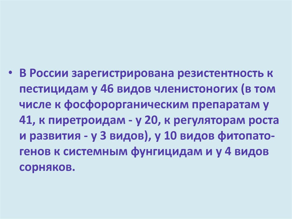 • В России зарегистрирована резистентность кпестицидам у 46 видов членистоногих (в том