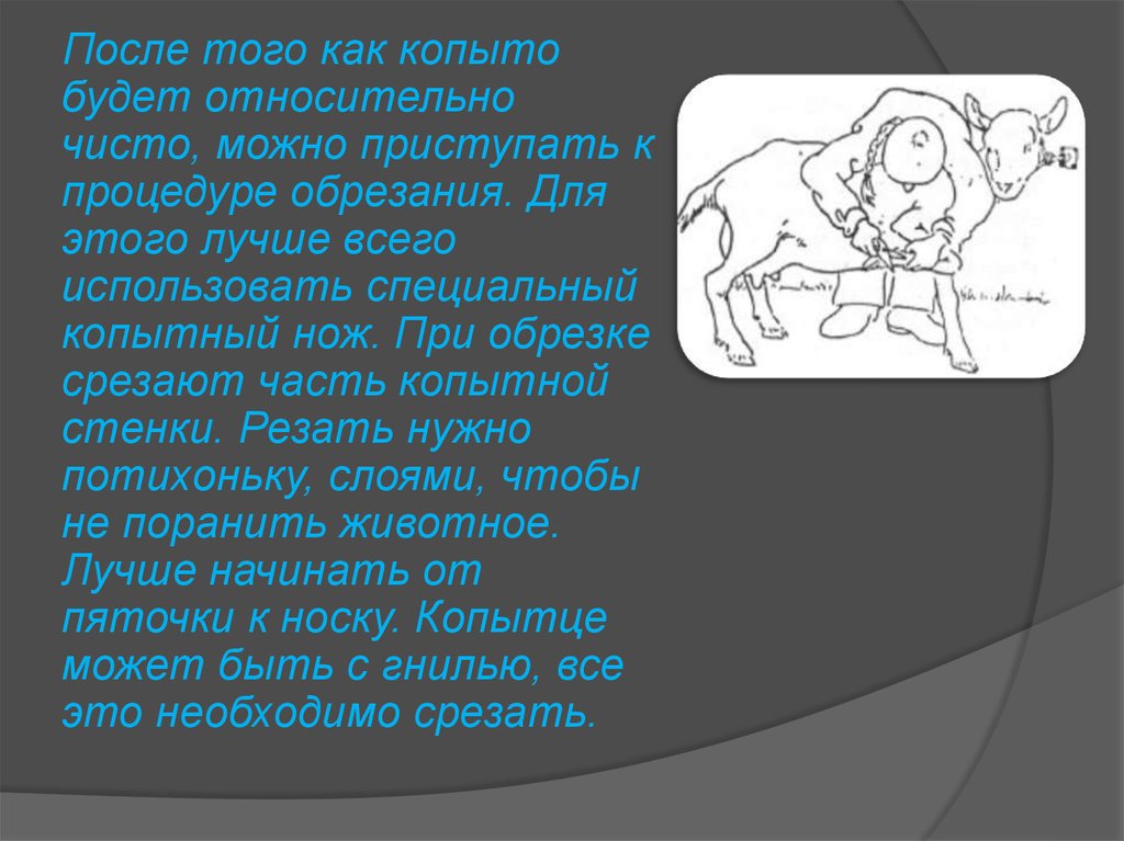 Перед обрезкой копыткозу необходимо