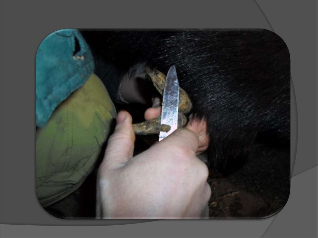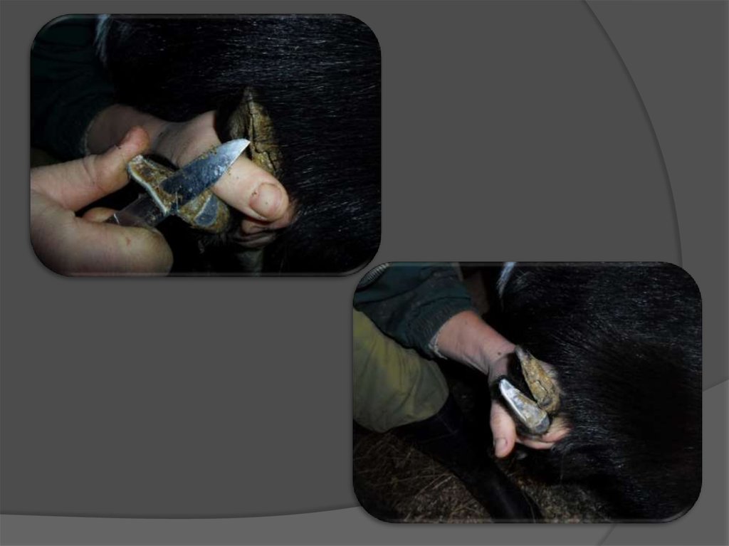 Обрезать копыта нужно до розоватойповерхности, дальше нельзя – там уже