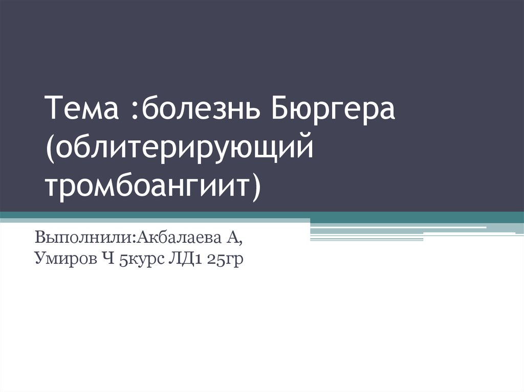 1. Тема :болезнь Бюргера (облитерирующий тромбоангиит)