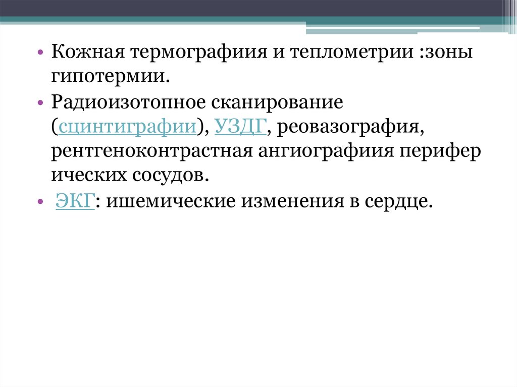 • Кожная термографиия и теплометрии :зоныгипотермии.