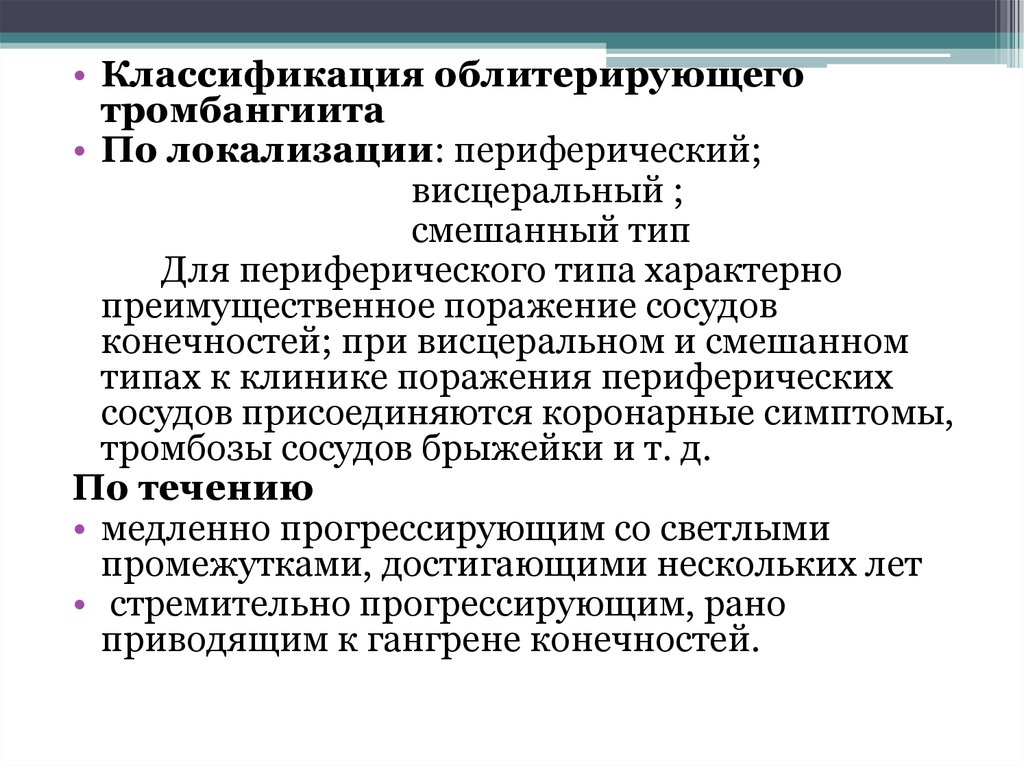• Прогноз и профилактикаоблитерирующего тромбангиита