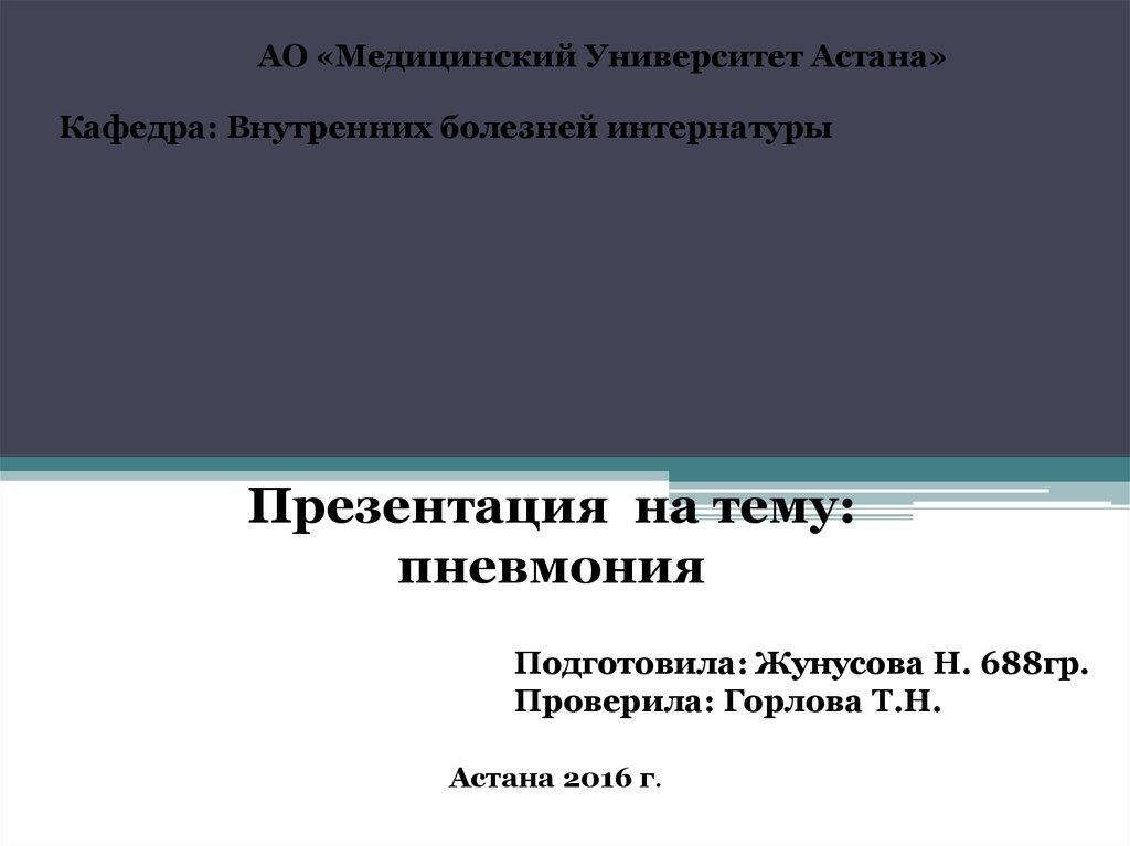 АО «Медицинский Университет Астана»Кафедра: Внутренних болезней интернатуры