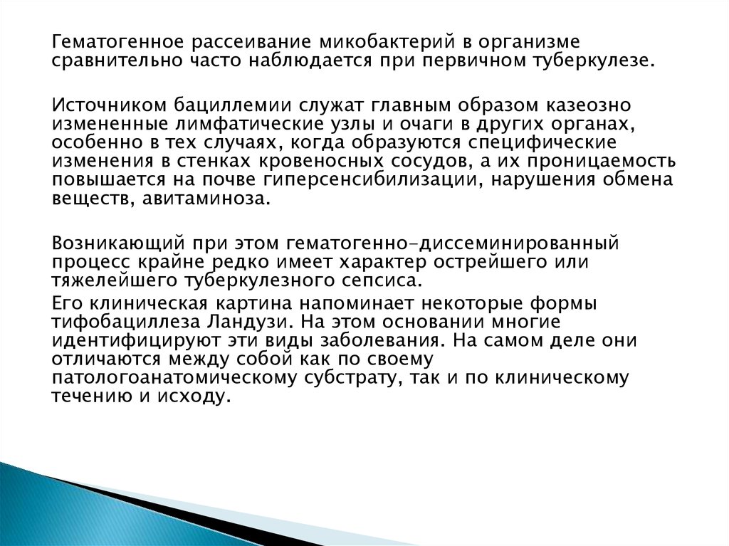туберкулезе. Распространение массивной инфекции лимфои гематогенным путем идет в этих случаях быстро во все