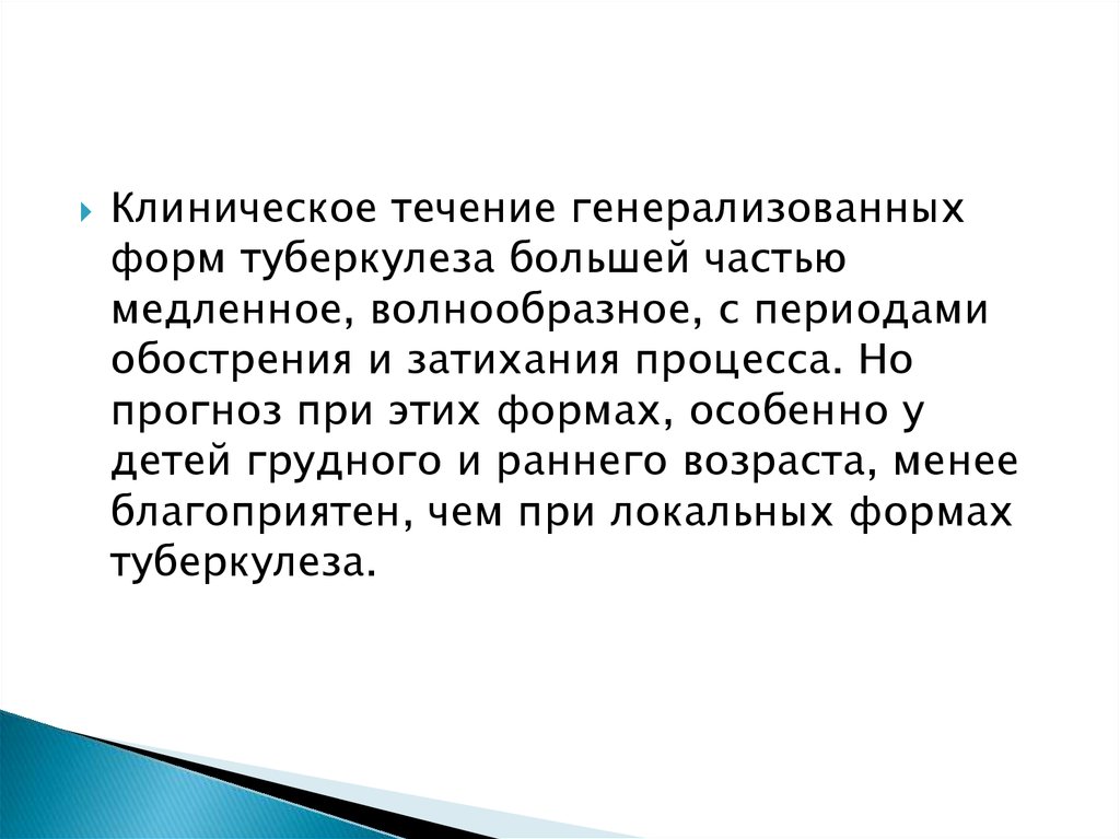 Клиническое течение генерализованныхформ туберкулеза большей частью
