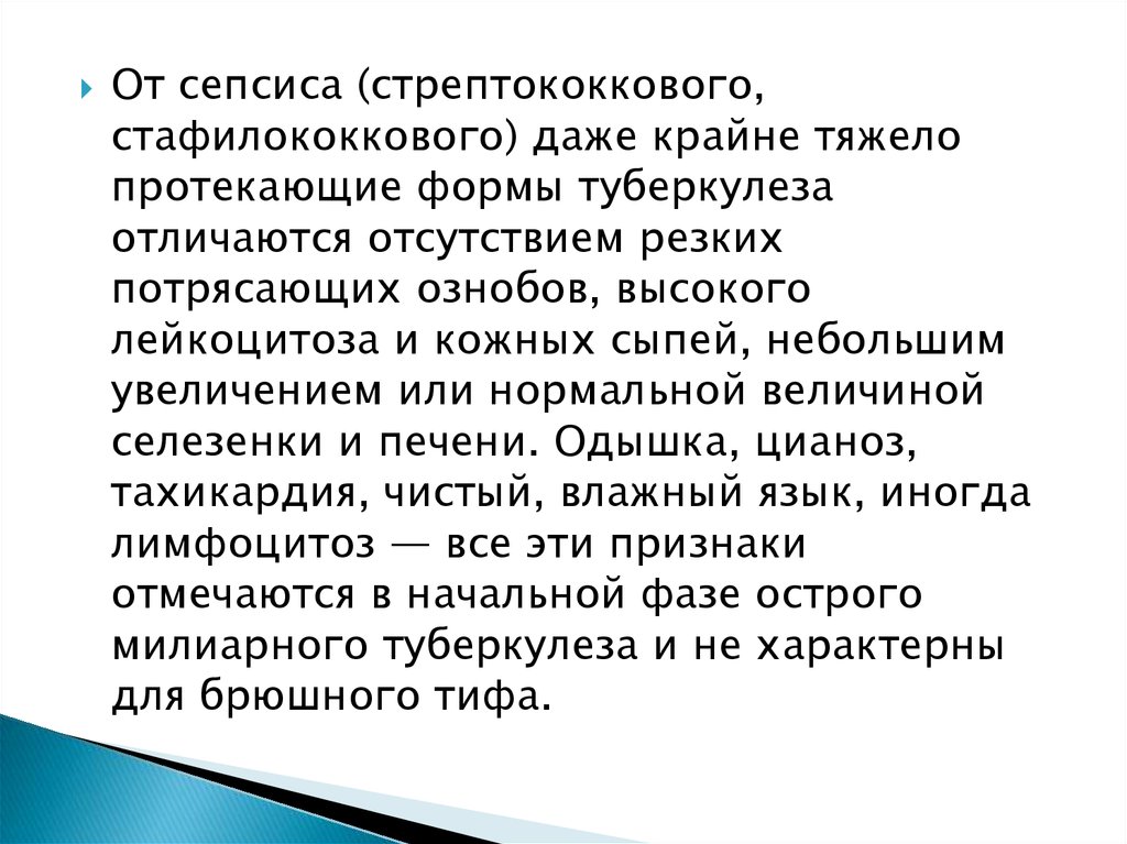 Туберкулезный сепсис начинается остро —с высокой температурой, диспепсическими