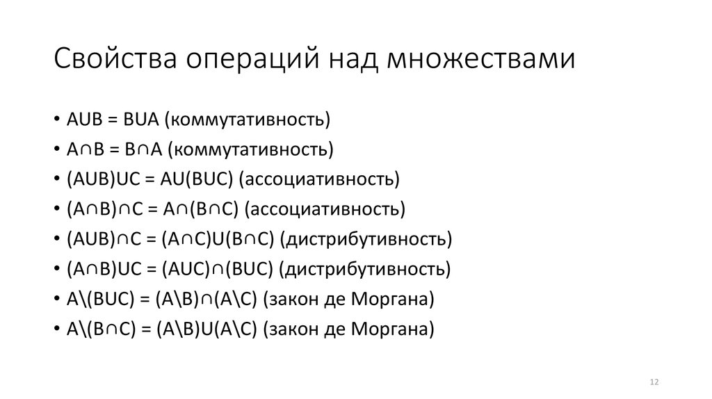 • (AUB)UC = AU(BUC) (ассоциативность)