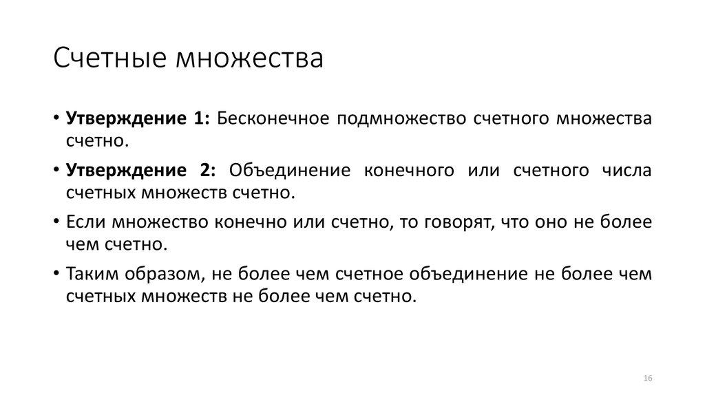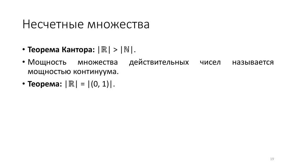 Несчетные множества• Теорема Кантора: |ℝ| > |ℕ|.