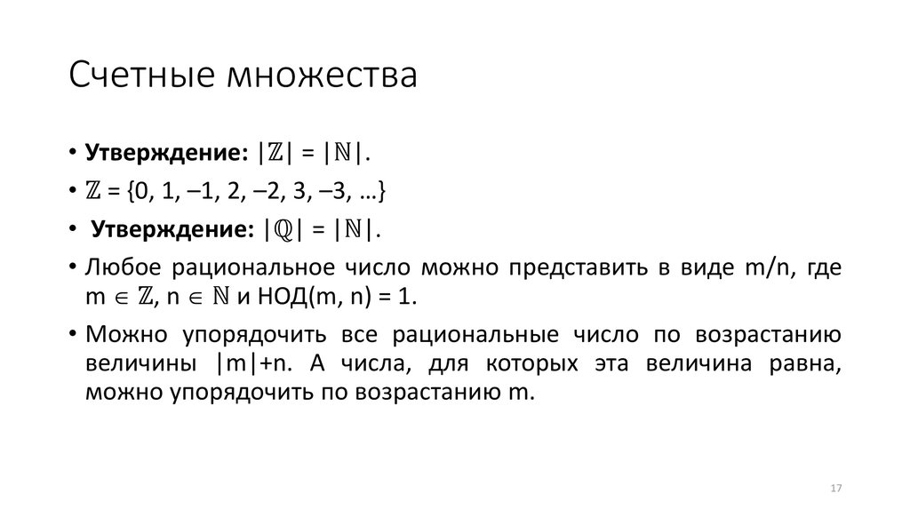 Счетные множества• Утверждение: |ℤ| = |ℕ|.