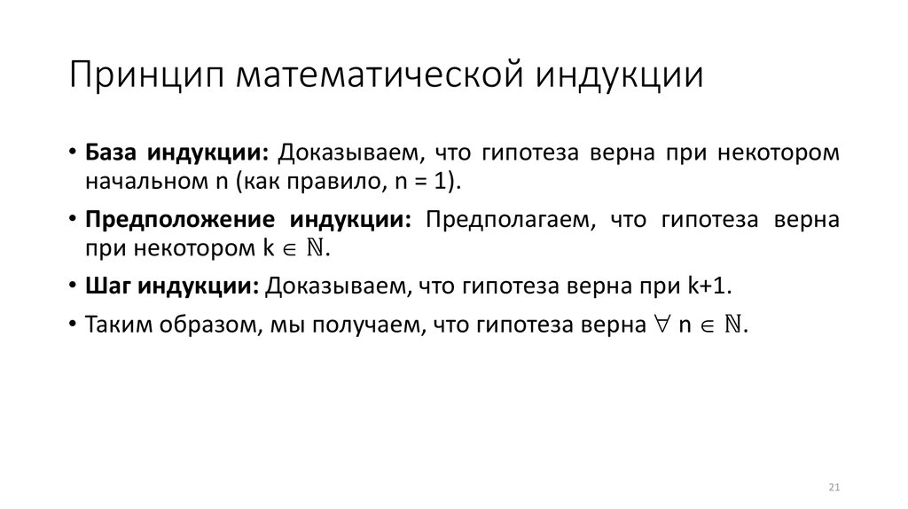 • Предположение индукции: Предполагаем, что гипотеза верна