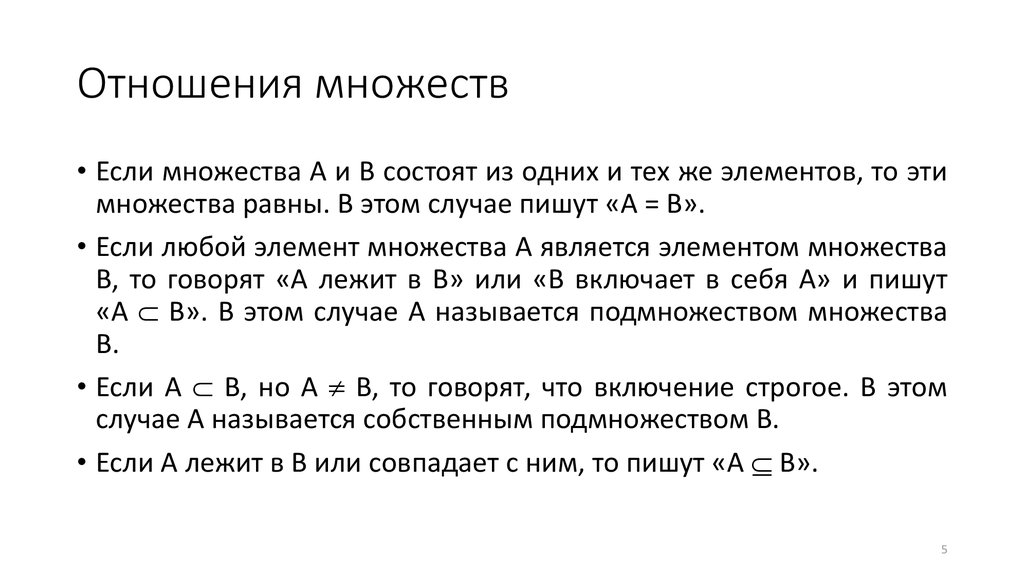• Если A лежит в B или совпадает с ним, то пишут «A B».