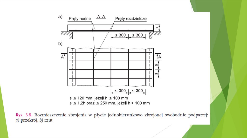 gdy grubość płyty h ≤ 10 cm, maksymalny rozstaw prętów s nie może