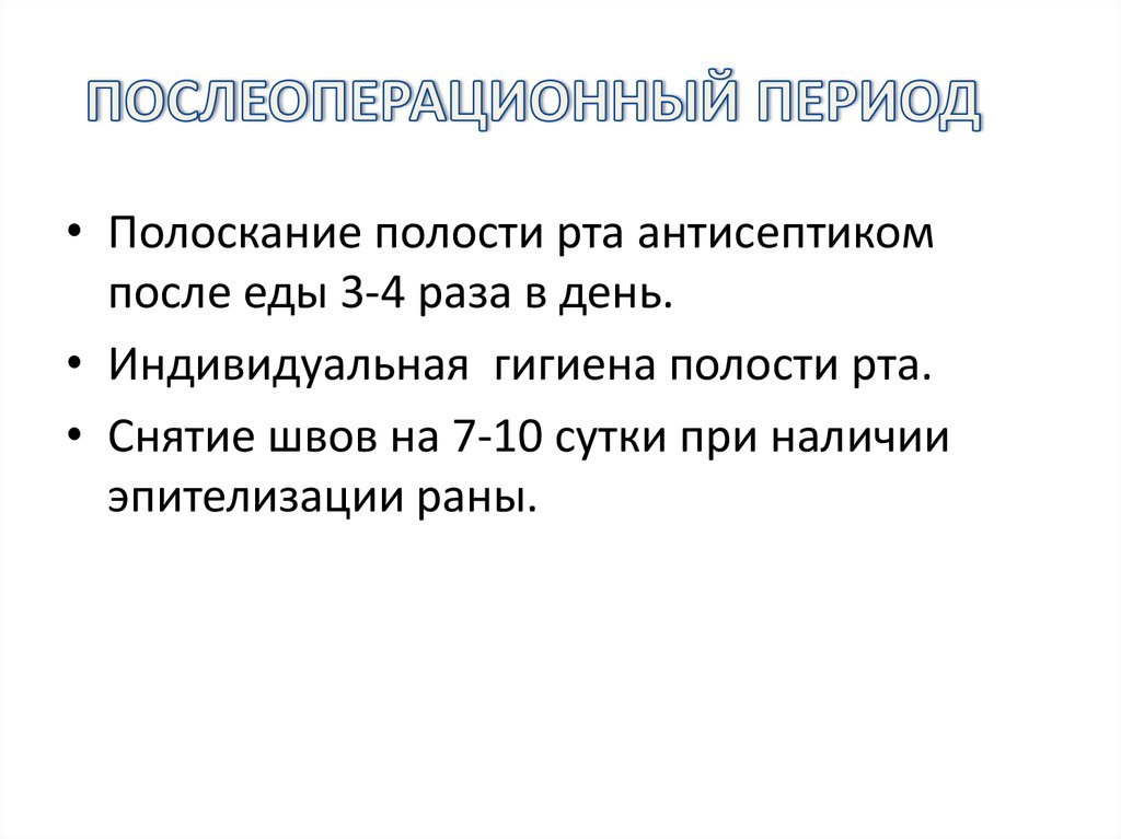 • Полоскание полости рта антисептикомпосле еды 3-4 раза в день.