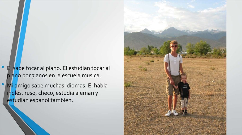 • El sabe tocar al piano. El estudian tocar alpiano por 7 anos en la escuela musica.