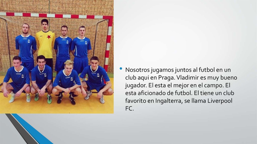 • Nosotros jugamos juntos al futbol en unclub aqui en Praga. Vladimir es muy bueno