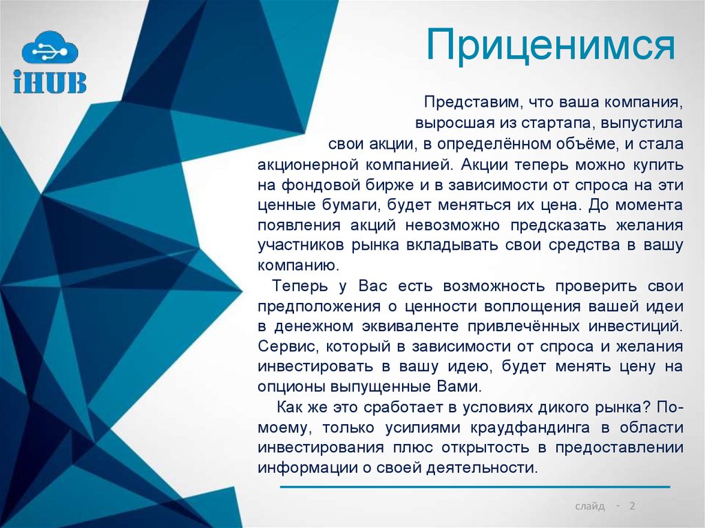 участников рынка вкладывать свои средства в вашу