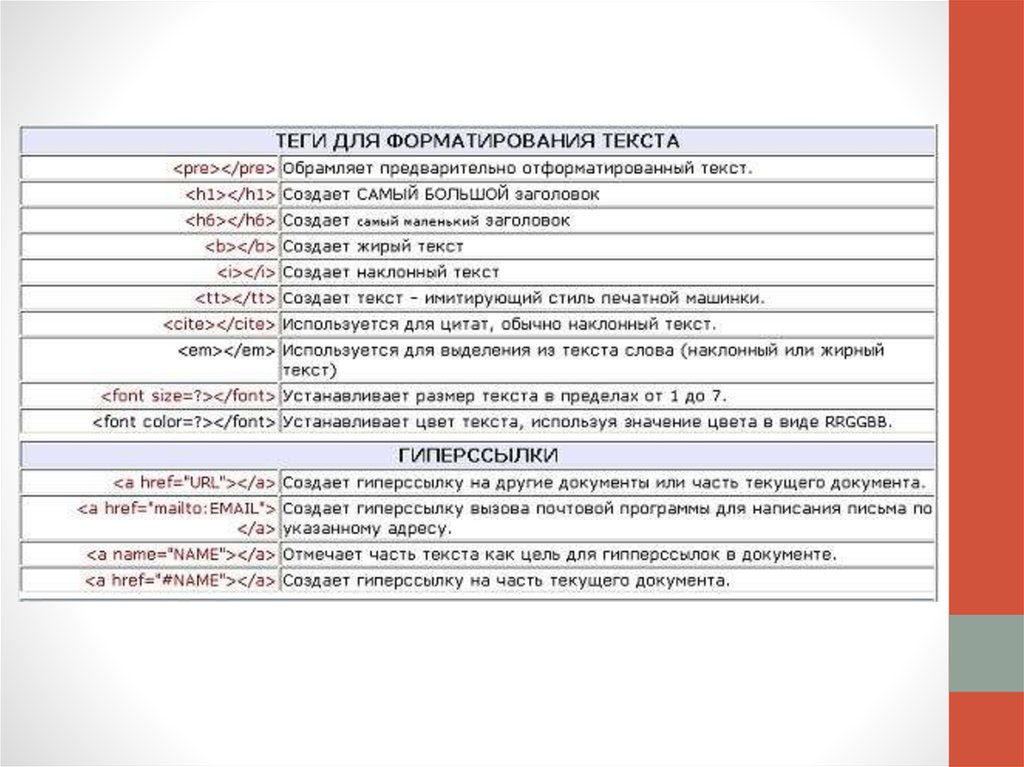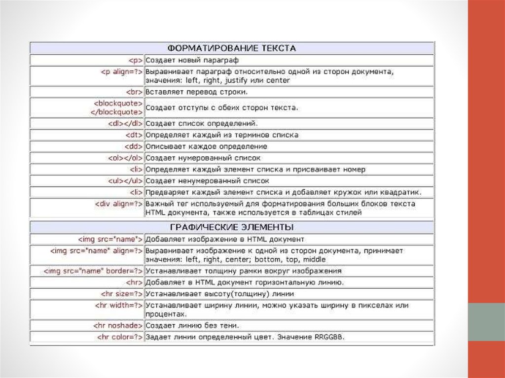 • Тэг - специальный код, вставляемый в текст дляформатирования элементов HTML-документа. Это