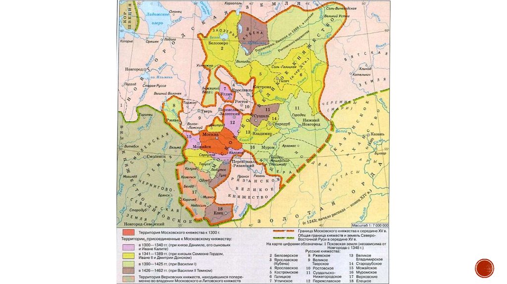 8. Даниил Александрович 1276-1303 Начинает расширять территорию Московского княжества. 1300 – присоединяет Коломну 1302 –