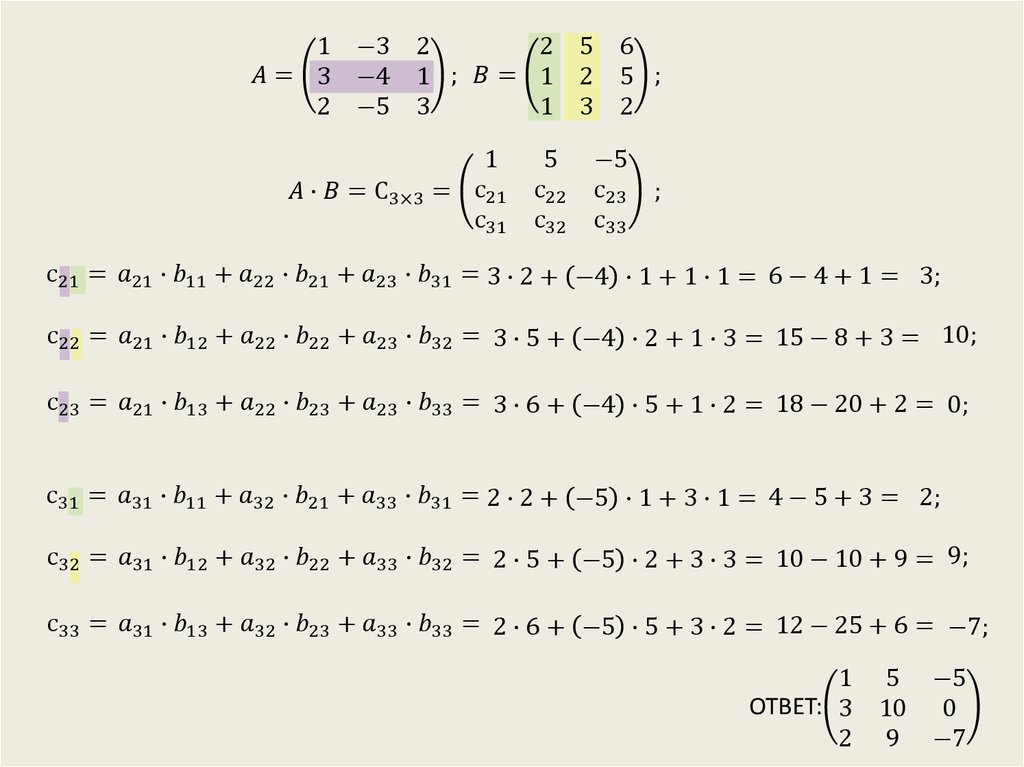 Проверим согласование размерностей матриц 2 ∙ А и −3 ∙ В :