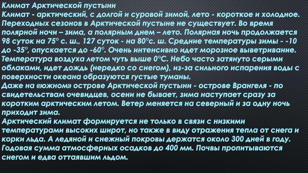 Зона арктических пустынь. Положение на карте. Климат