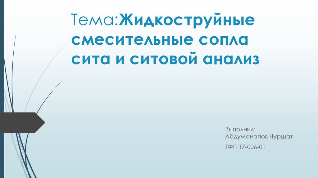 1. Тема:Жидкоструйные смесительные сопла сита и ситовой анализ