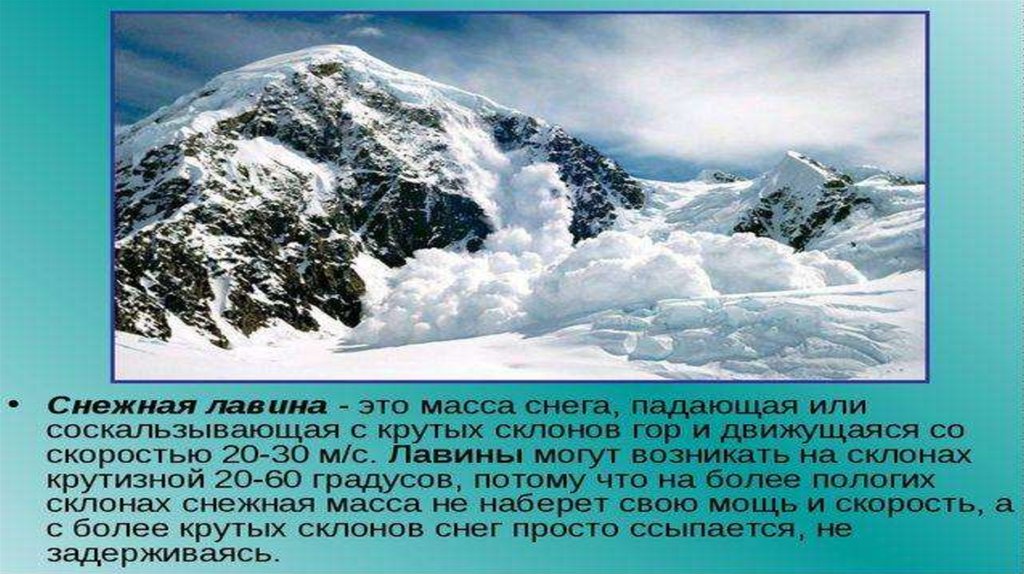 Снежные лавины. Правила безопасного поведения при угрозе схода лавины