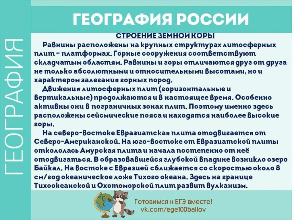 Рельеф, геологическое строение и полезные ископаемые. Особенности рельефа России