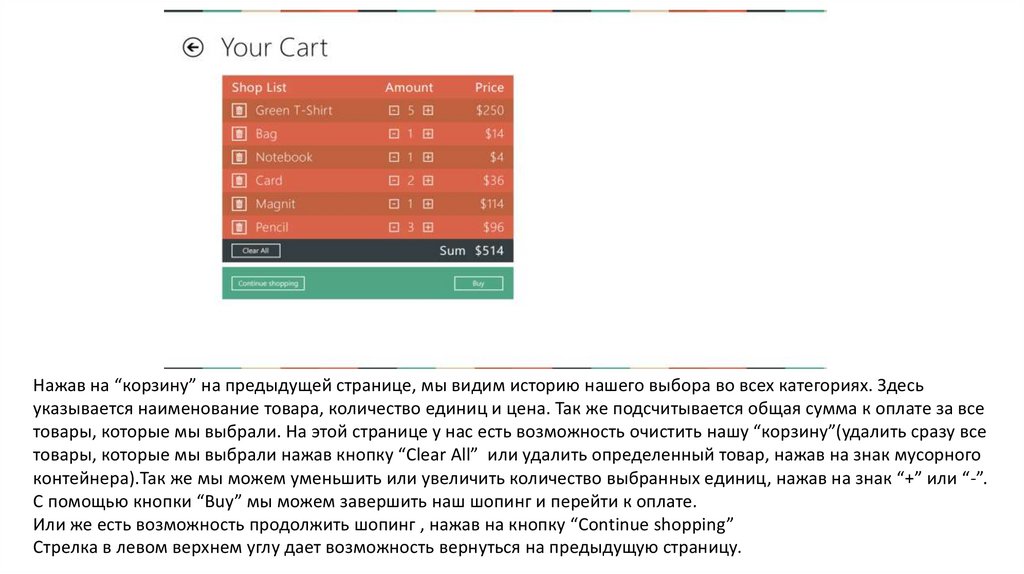 покупки. При нажатии на “корзину” мы переходим на страницу с более детальным описанием