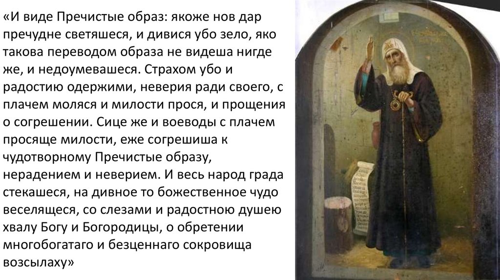 «И виде Пречистые образ: якоже нов дарпречудне светяшеся, и дивися убо зело, яко