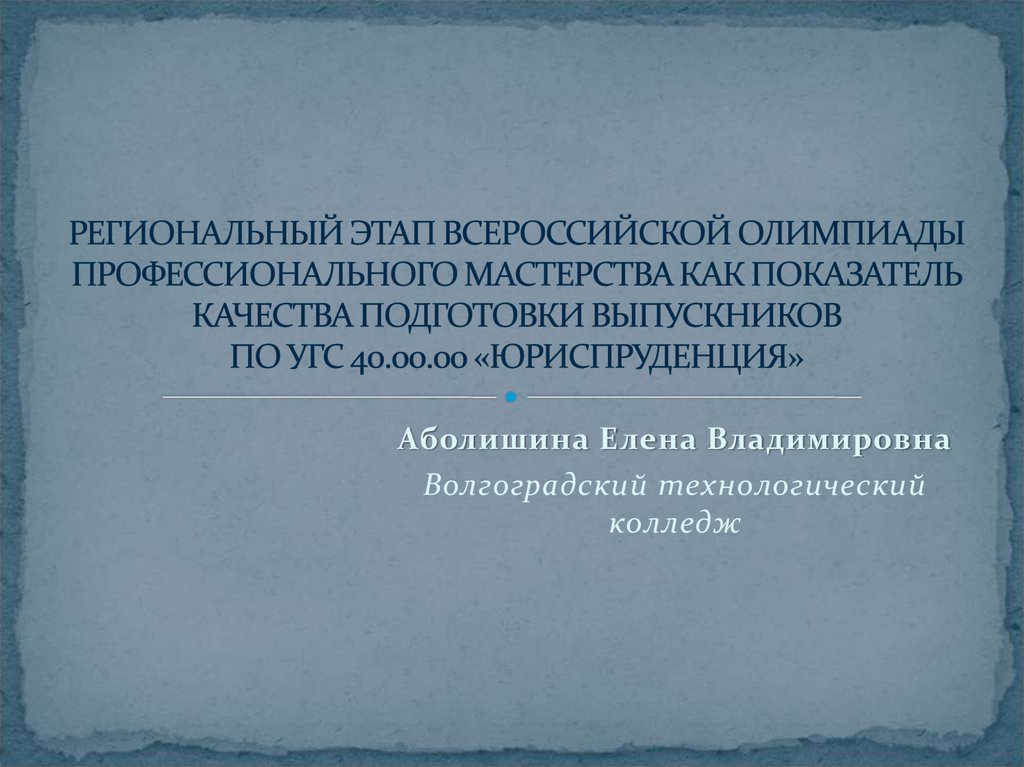 Аболишина Елена ВладимировнаВолгоградский технологический