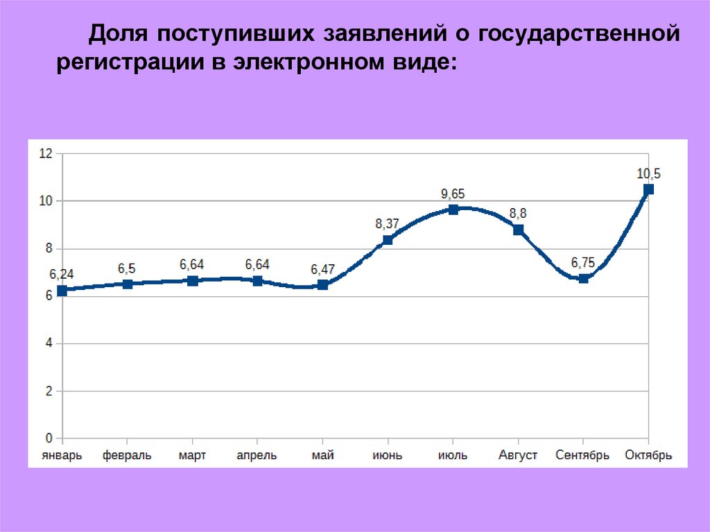 Доля поступивших заявлений о государственнойрегистрации в электронном виде: