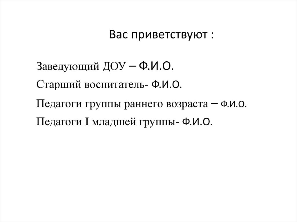 Вас приветствуют :Заведующий ДОУ – Ф.И.О.
