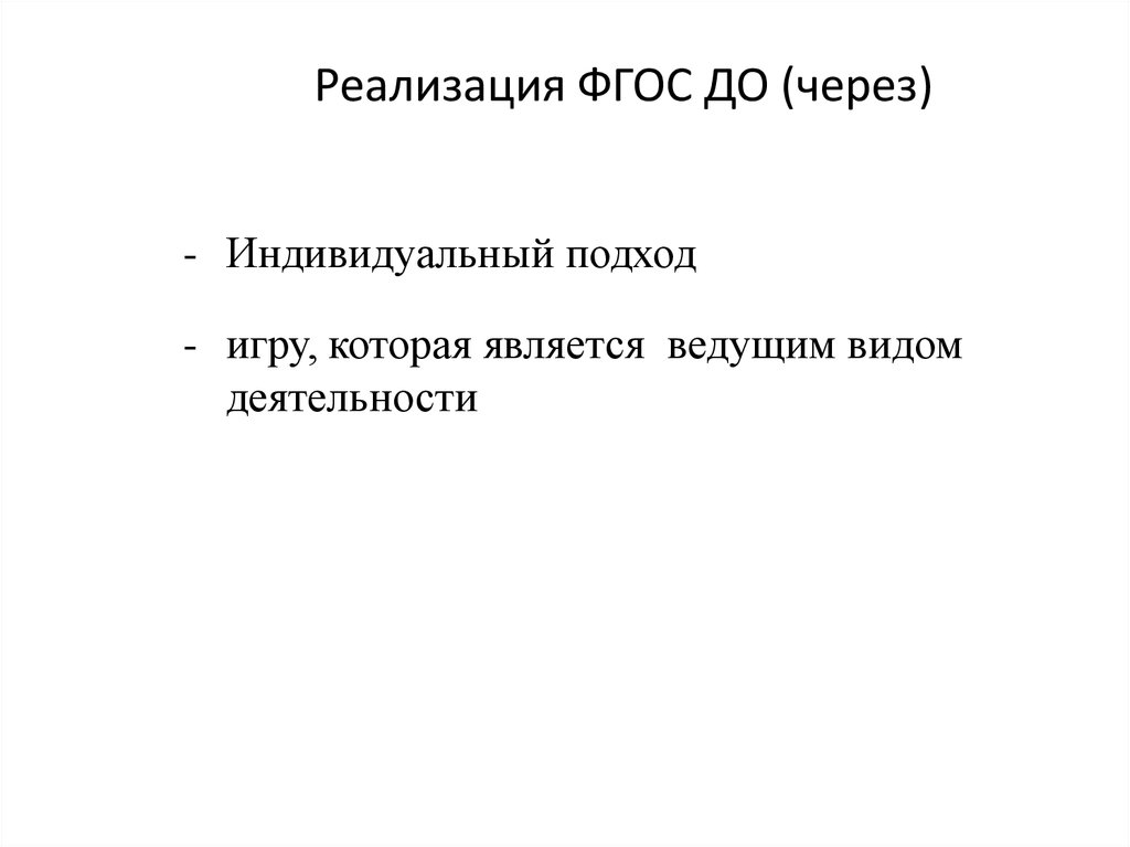Реализация ФГОС ДО (через)- Индивидуальный подход