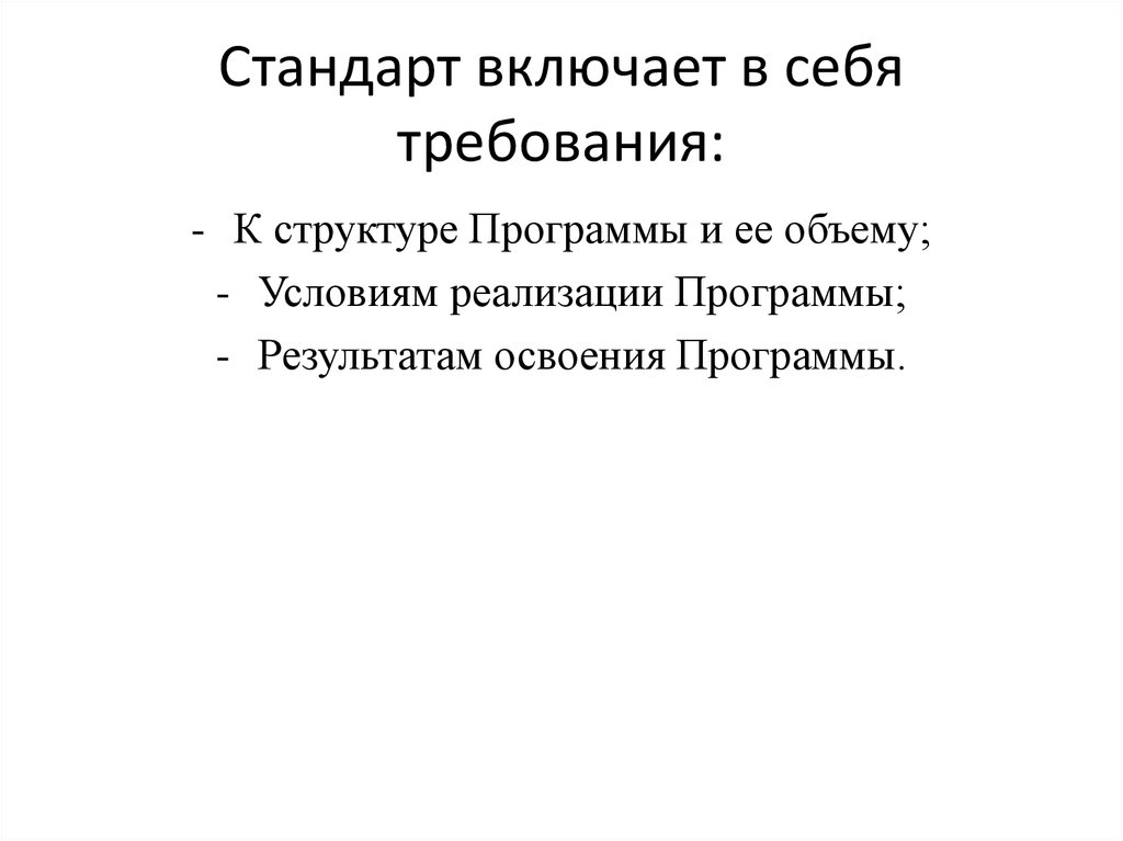 - К структуре Программы и ее объему;- Условиям реализации Программы;