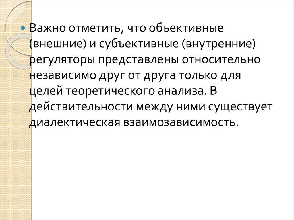 Важно отметить, что объективные(внешние) и субъективные (внутренние)