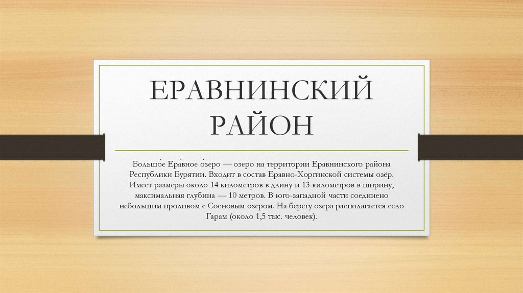Большо́е Ера́вное о́зеро — озеро на территории Еравнинского районаРеспублики Бурятии. Входит в состав Еравно-Хоргинской системы озёр.