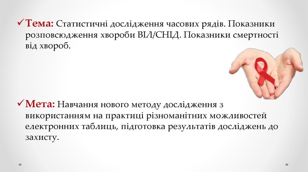 Тема: Статистичні дослідження часових рядів. Показникирозповсюдження хвороби ВІЛ/СНІД. Показники смертності