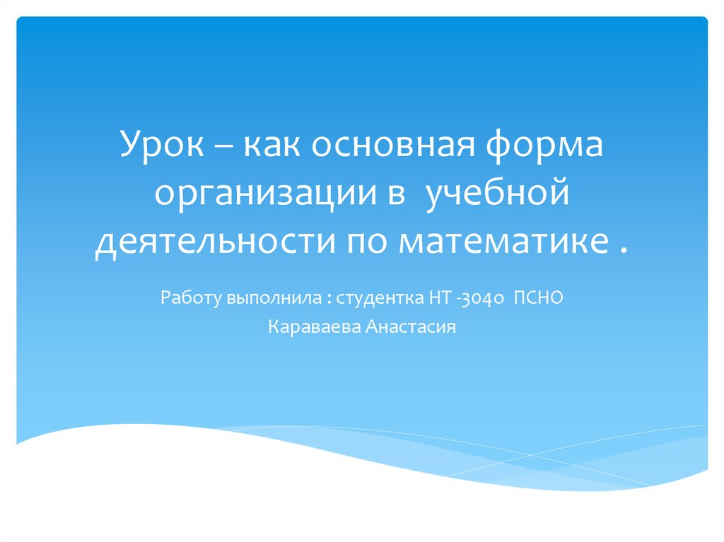 1. Урок – как основная форма организации в учебной деятельности по математике .