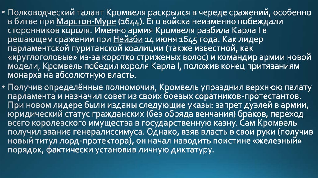 Оливер Кромвель. Английский государственный деятель и полководец