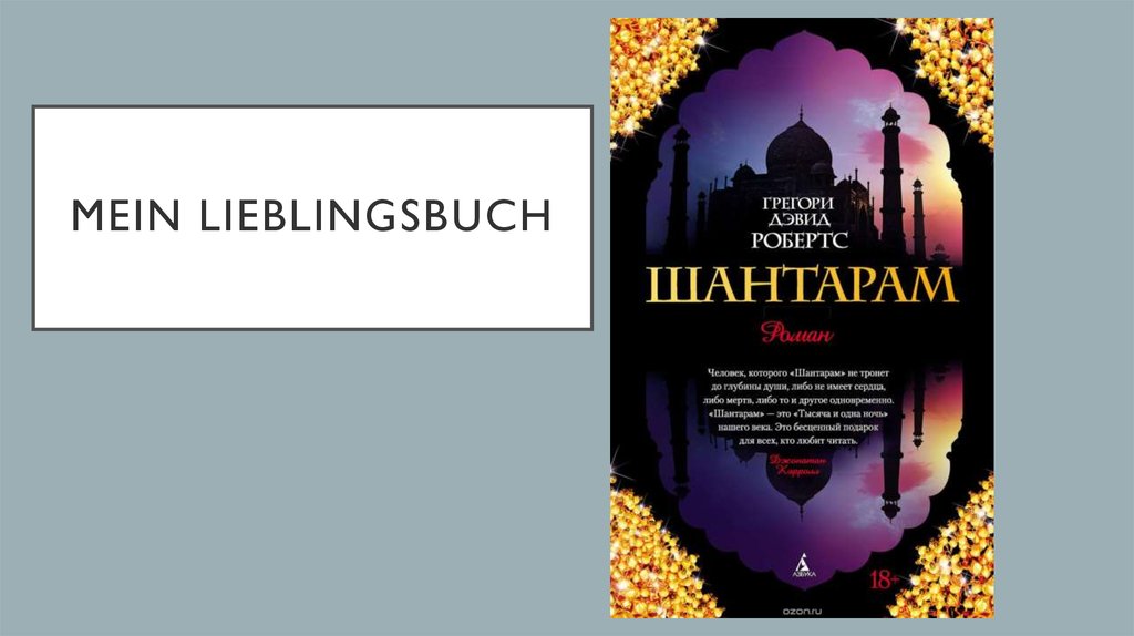 • Shantaram ist ein Roman desaustralischen Schriftstellers Gregory