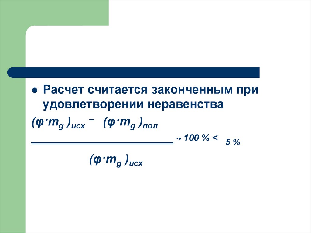 то расчет следует повторить, принявполученные значения и mg за исходные.