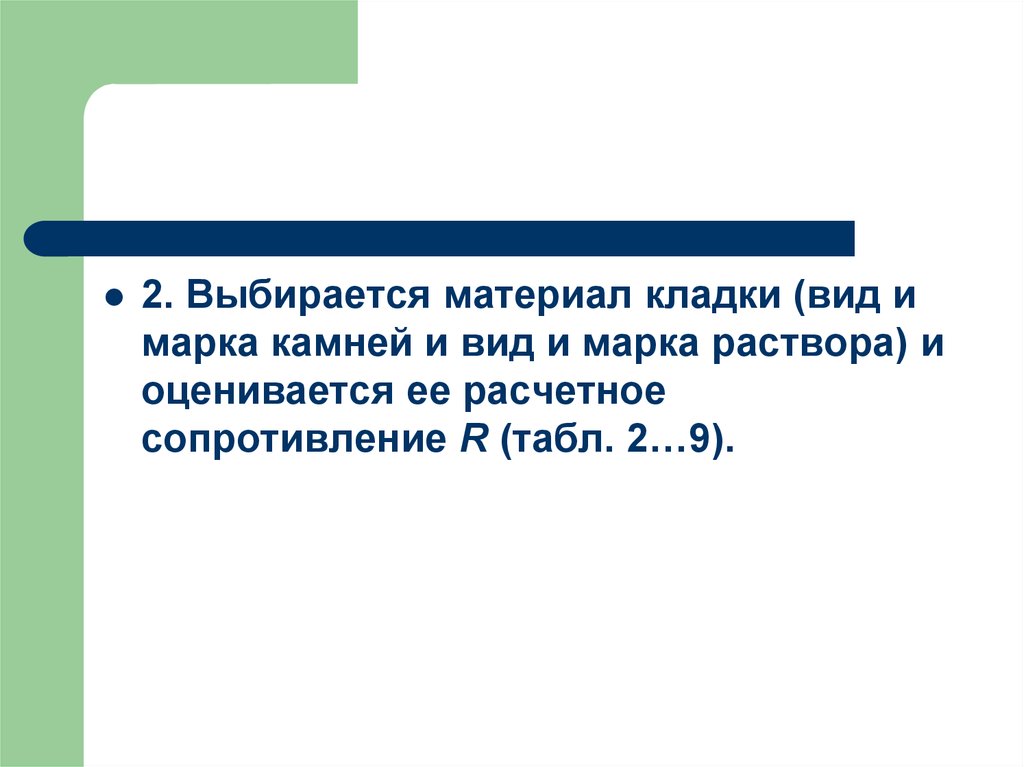 2. Выбирается материал кладки (вид имарка камней и вид и марка раствора) и