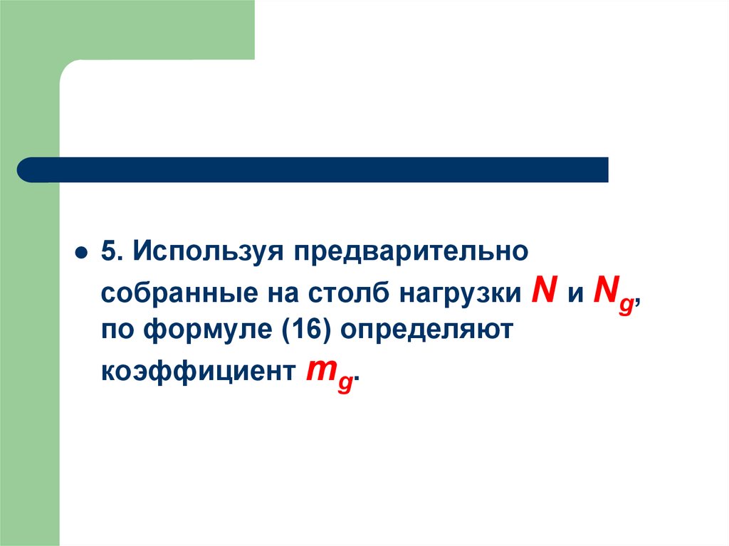 5. Используя предварительнособранные на столб нагрузки N и Ng,