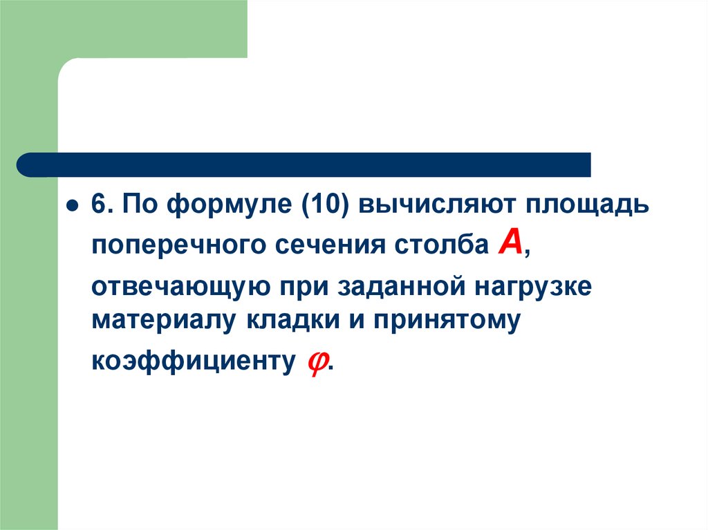 6. По формуле (10) вычисляют площадьпоперечного сечения столба А,