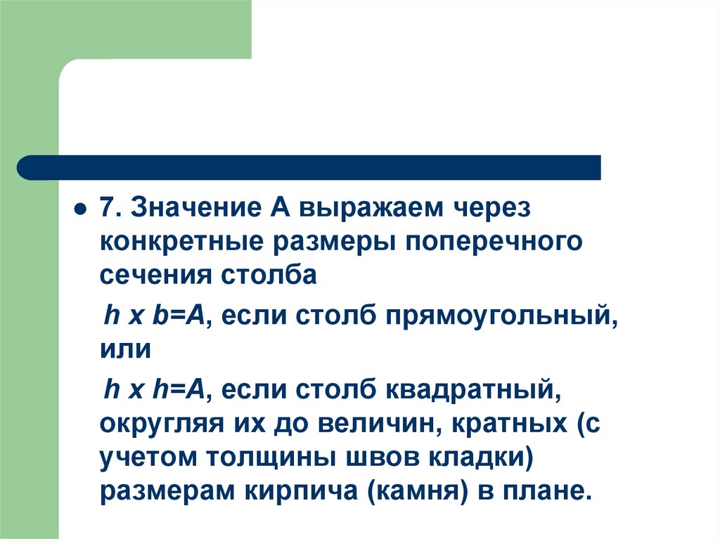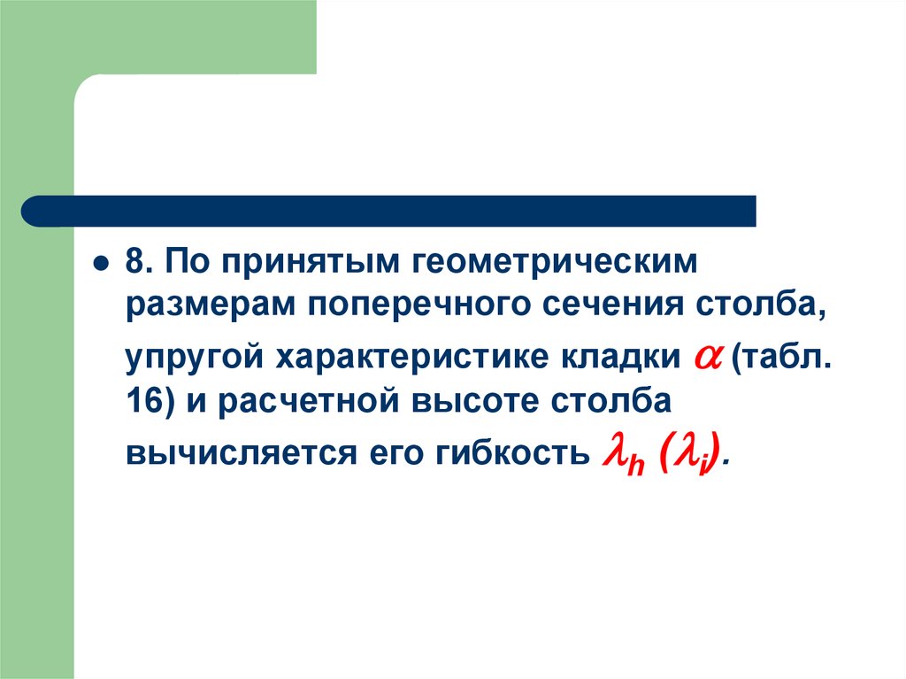 8. По принятым геометрическимразмерам поперечного сечения столба,