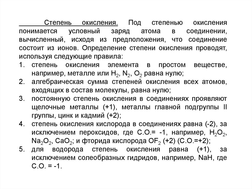 исключением пероксидов, где С.О.= -1, например, Н2О2,